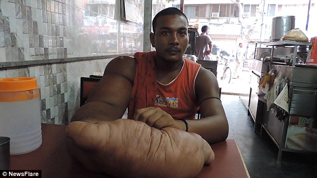 In the bustling city of Allahabad, India, a young man named Bablu Pashi faces a daily battle that most of us could never imagine. At just 25 years old, Bablu suffers from gigantism—a rare genetic condition that causes excessive growth of body tissues. As a result, his right arm has swollen to an astounding 44lbs (20kg), more than double its normal size.