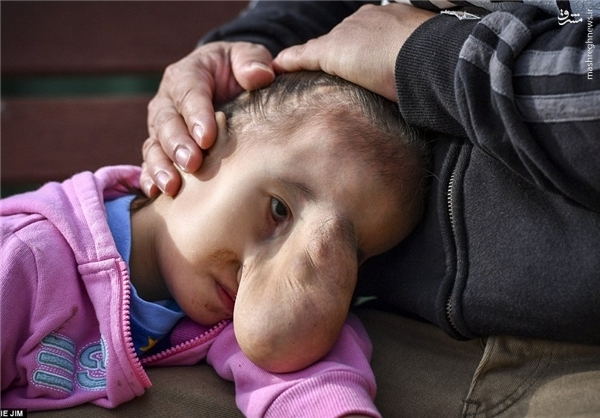 Precy, a four year old girl from Phillipines. She has an encephalocele, a protrusion where cranial contents gather when bones in the skull havent formed. She will go to Adelaide to have an operation with his father Dale. 5 August 2016. The Age NEWS. Photo: Eddie Jim.
