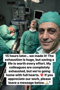 In that quiet, post-operative stillness, the exhaustion transformed. Suddenly, the team wasn’t thinking about their own tired bodies; they were thinking about a waiting room down the hall. They were thinking about the phone call that would change a family’s life. Because of those fifteen hours, a family gets a “tomorrow.” They get another hug, another birthday, and another chance to say “I love you.”