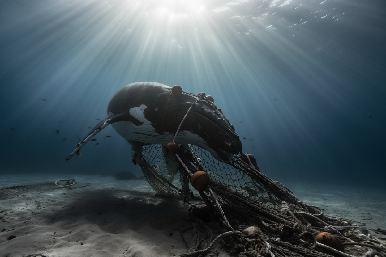 In a tense and heart-stopping moment, a whale was discovered trapped underwater, struggling to break free. The massive creature, disoriented and unable to surface for air, found itself in a perilous situation that could have turned tragic if not for the swift response of a dedicated rescue team.