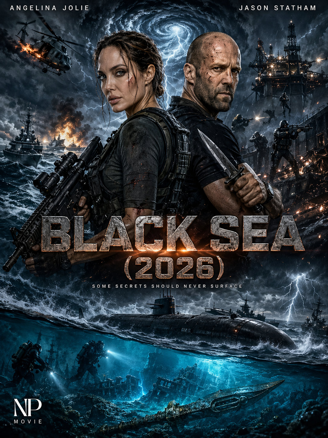 **BLACK SEA (2026)** surges onto screens as a high-stakes, pulse-pounding action thriller that plunges two of Hollywood’s most iconic stars into the treacherous depths of international espionage and brutal underwater combat. Starring **Jason Statham** and **Angelina Jolie**, the film delivers non-stop adrenaline, explosive set pieces, and intense hand-to-hand confrontations set against the mysterious and dangerous backdrop of the Black Sea. Promoted in stunning 4K quality trailers, this new action movie promises a cinematic experience filled with breathtaking stunts, lethal betrayals, and edge-of-your-seat tension.