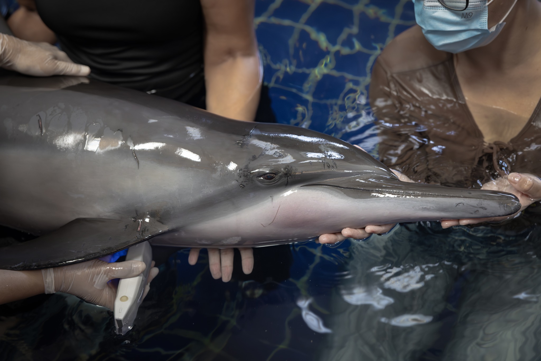 For now, the staff and volunteers are giving her the best possible care and attention, working together to ensure that this rare fish gets a fighting chance at growing into a healthy adult.