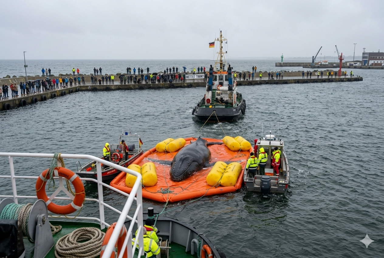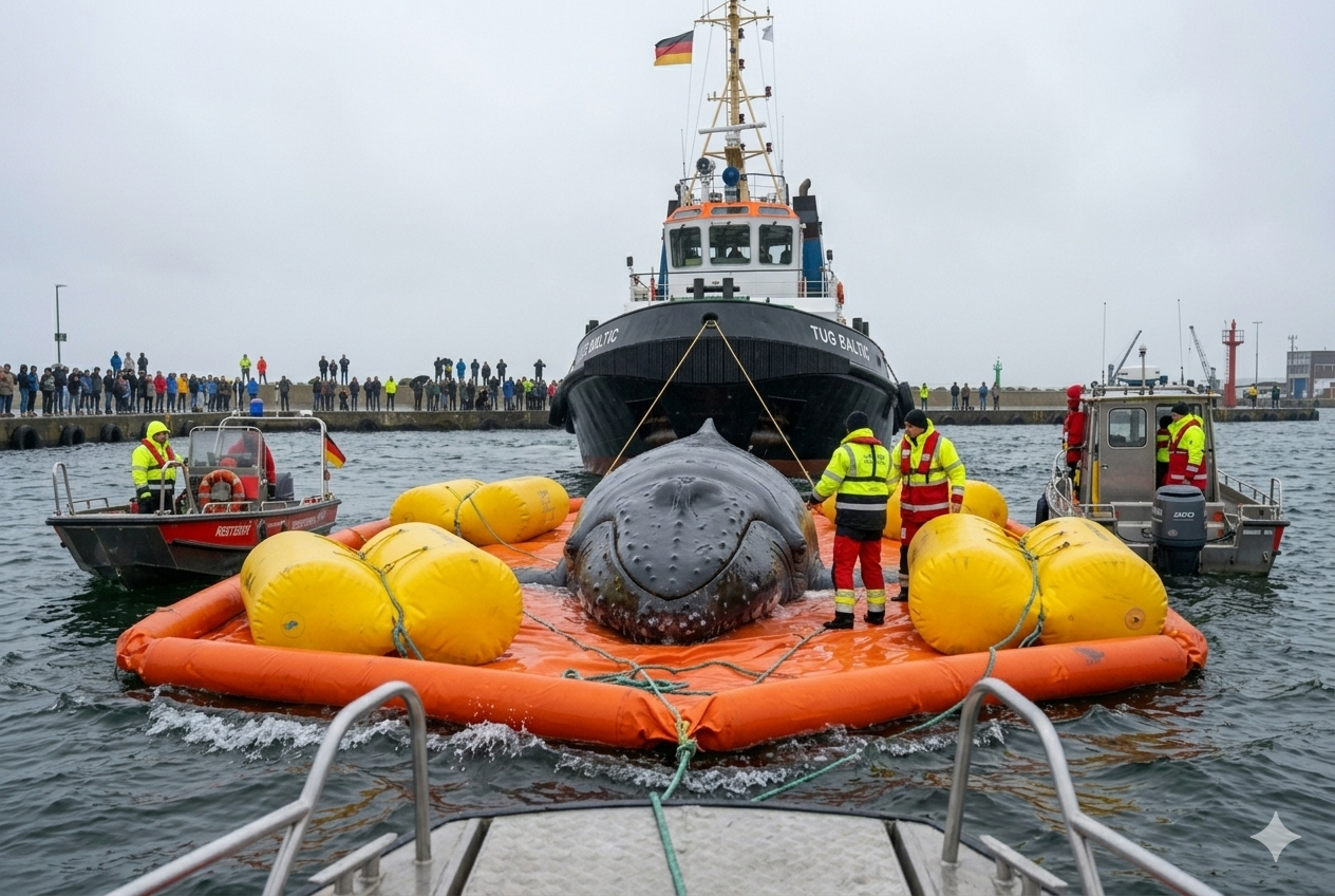 For days, Timmy had been stuck in the shallow waters of the Baltic Sea, unable to move due to the narrow inlet and rising tides. The situation was dire, and every effort to free him seemed to fall short. But now, thanks to the ingenuity of rescue teams, there is hope.