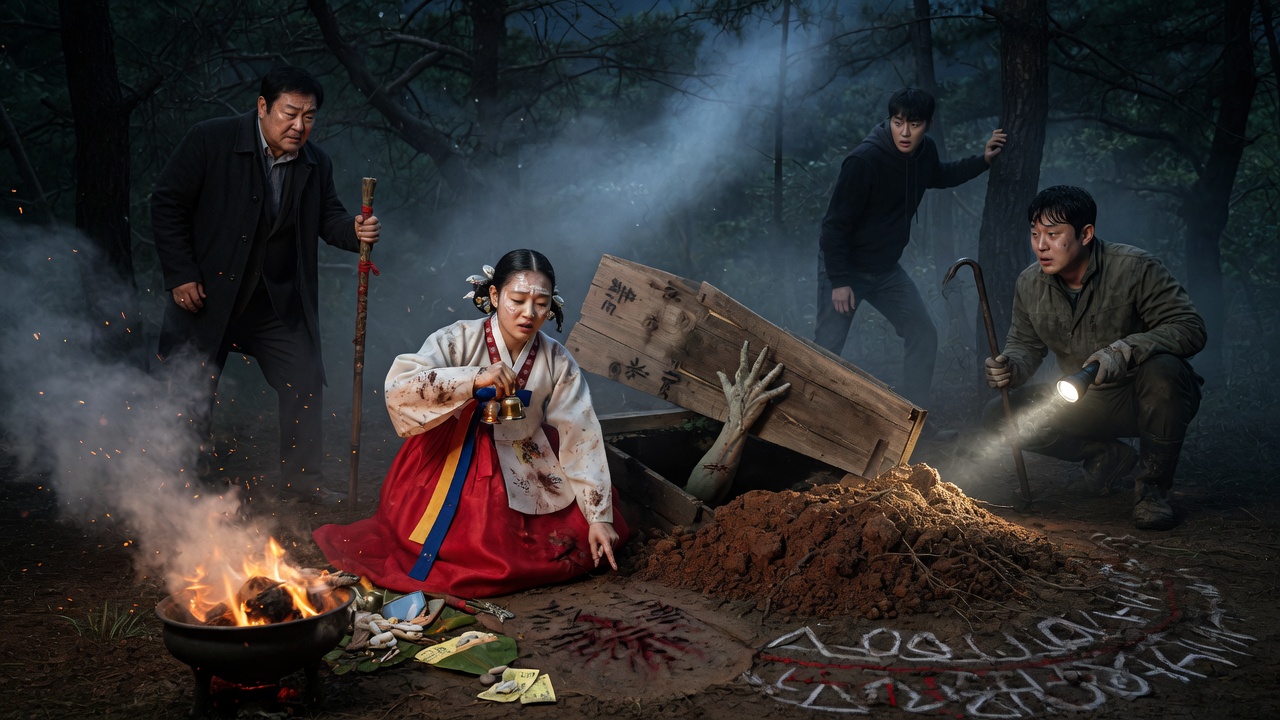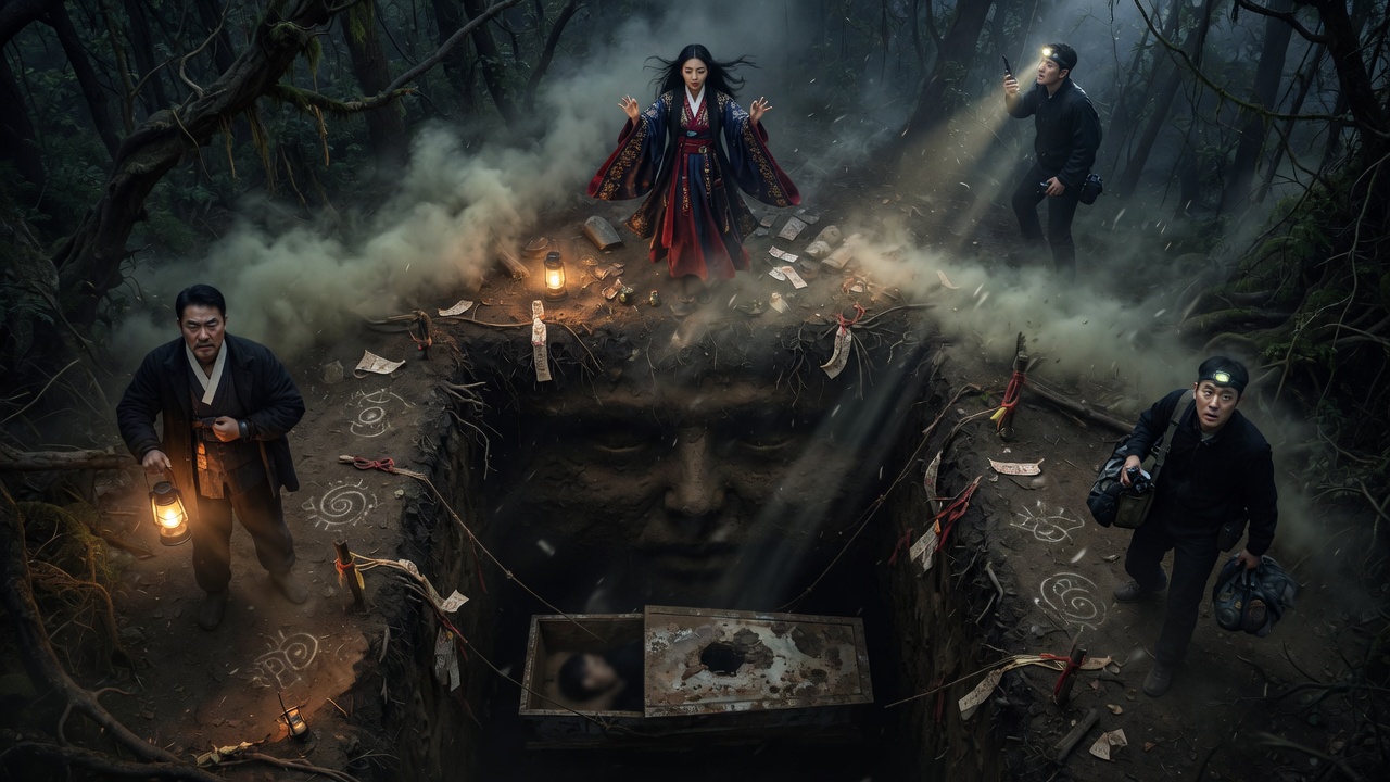 To solve the mystery, Hwa-rim recruits the legendary feng shui master Kim Sang-deok (Choi Min-sik) and the experienced undertaker Go Yeong-geun (Yoo Hae-jin). Together, this unlikely team of paranormal experts decides to exhume the ominous grave.