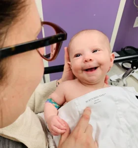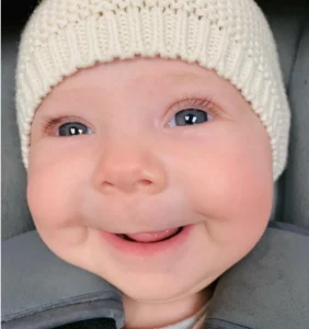 She returned as a smiling, expressive, energetic baby—her playful nature shining through the medical journey she had just endured.