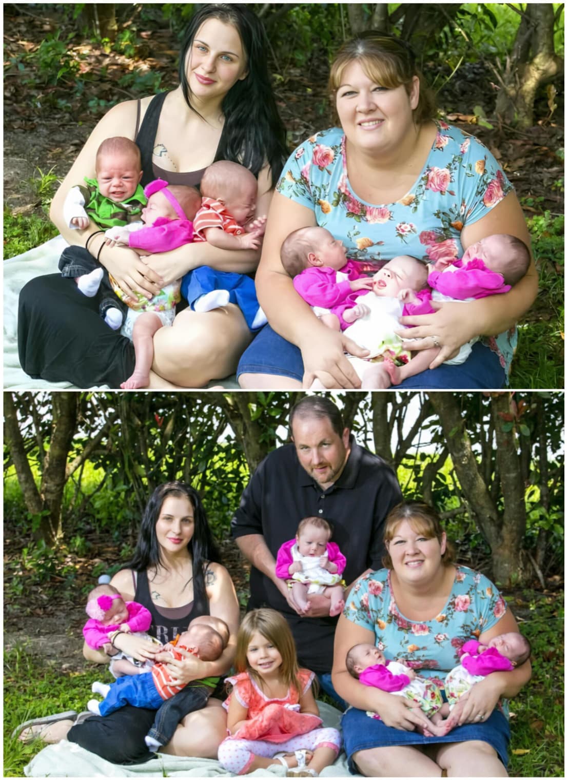 Both women now find themselves navigating the challenges of raising three infants each, side by side in life-changing parallel experiences.
