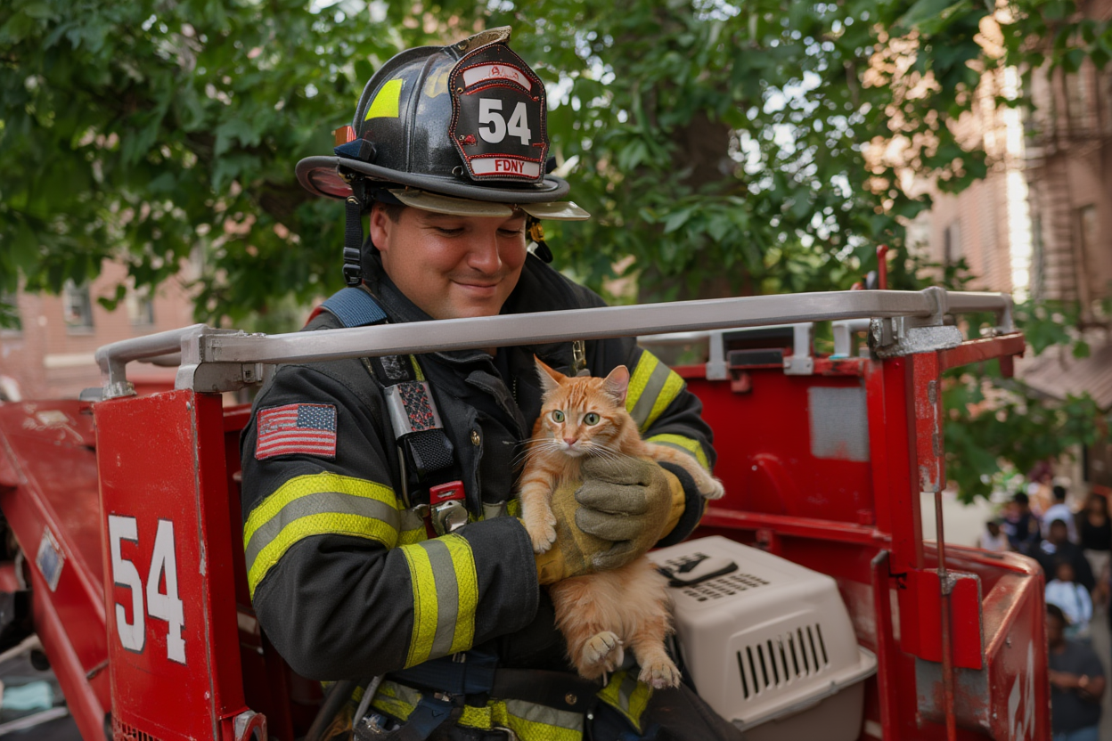 Heart-Stopping Rescue: Firefighter Climbs High to Save Stranded Kitten
