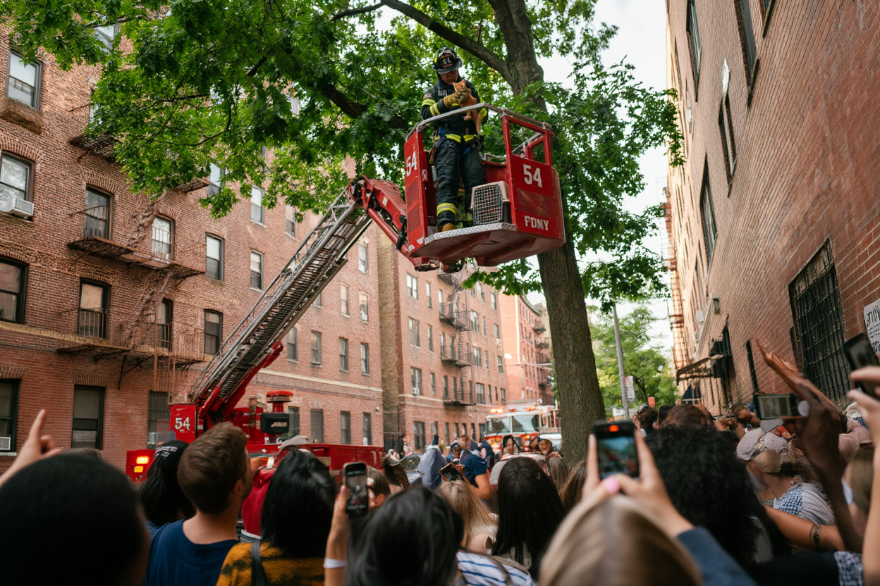 The crowd holds its collective breath as the firefighter’s hand inches closer to the kitten, and then… a miracle.
