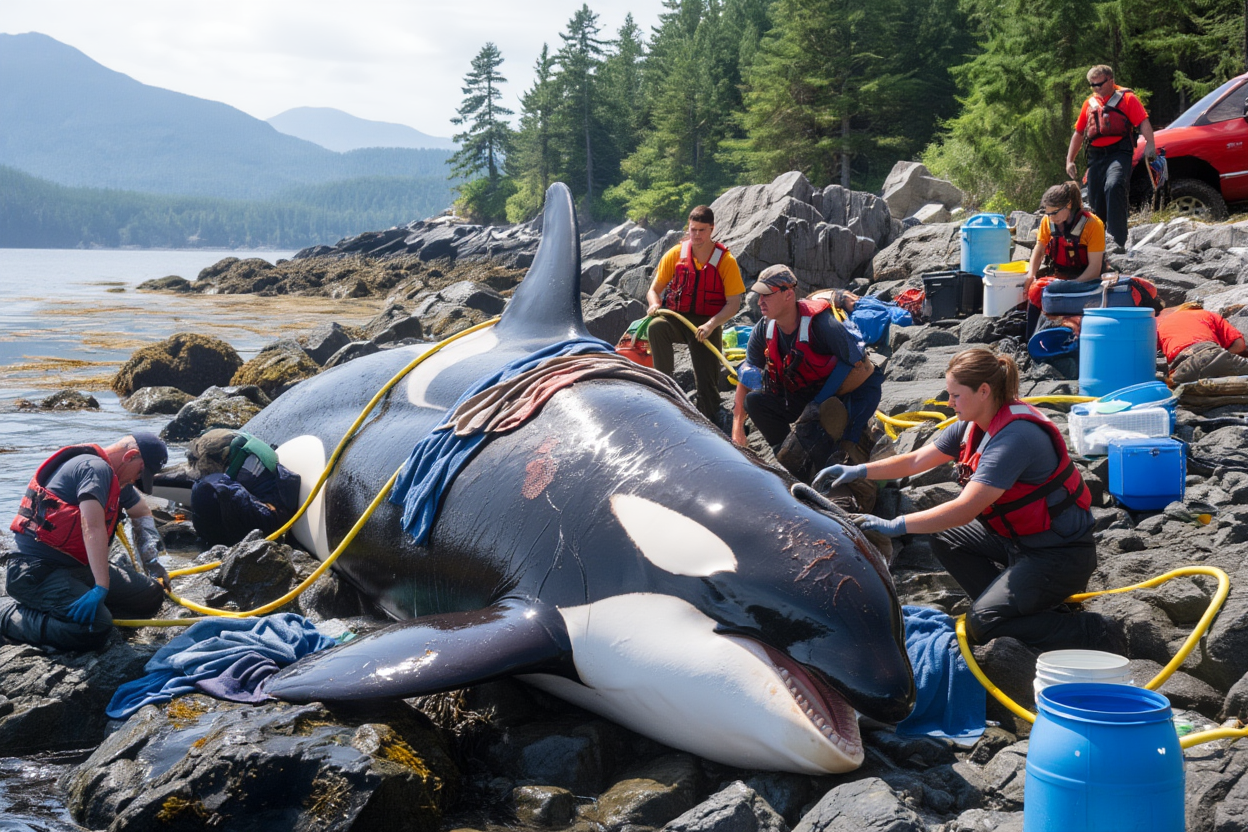 Large-Scale Emergency Rescue: Giant Orca Receives Watering and Full-Strength Effort from a Powerful Team!