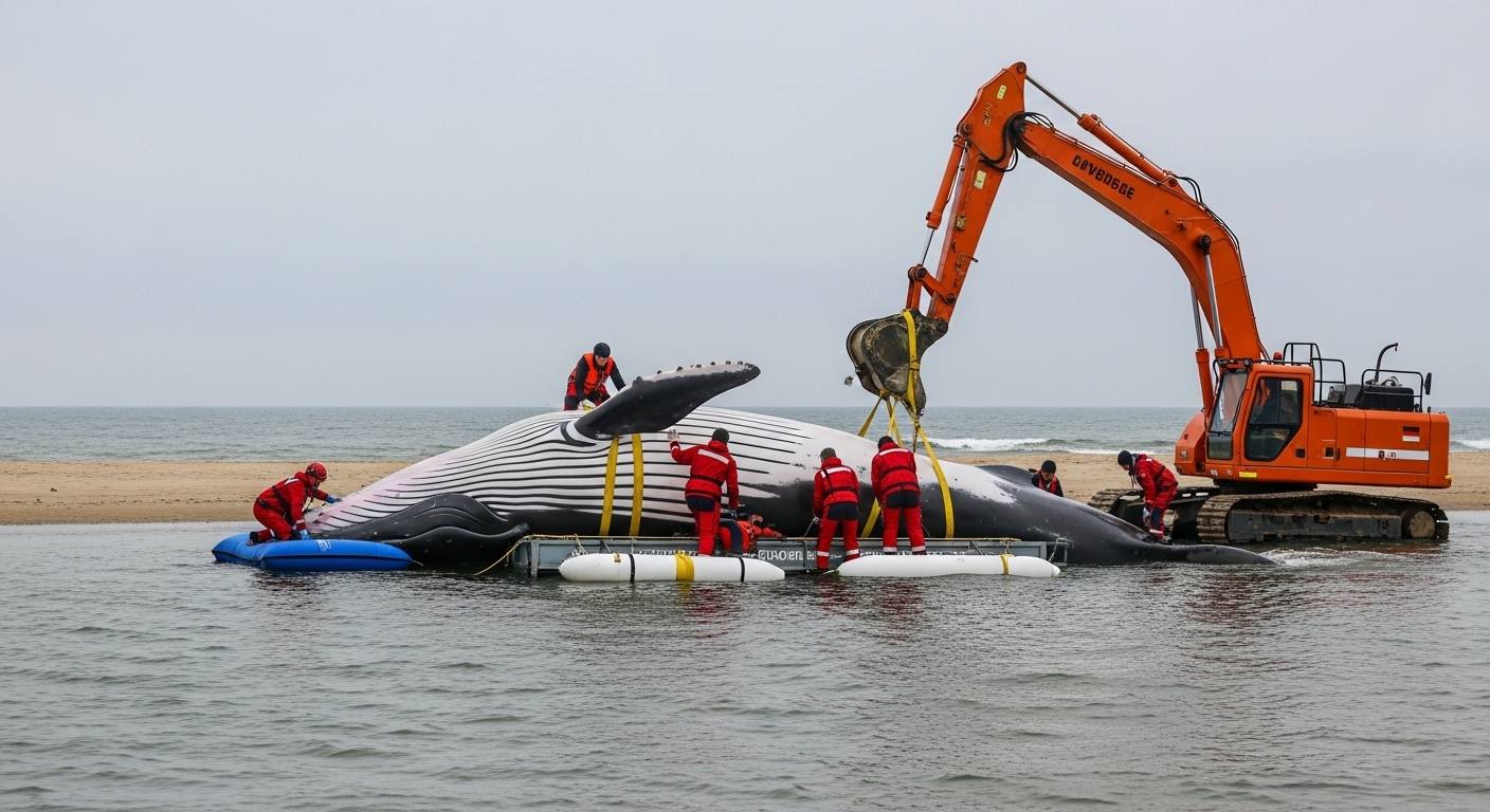 A specialized team of marine experts, veterinarians, and engineers have worked around the clock to prepare for today’s final attempt to save the stranded whale. The plan involves a series of delicate and highly precise maneuvers to gently lift the whale and transport it to safety. Using industrial air cushions, the whale will be carefully lifted, avoiding any injury, and the sand underneath its body will be washed away, clearing the way for the next phase of the rescue.