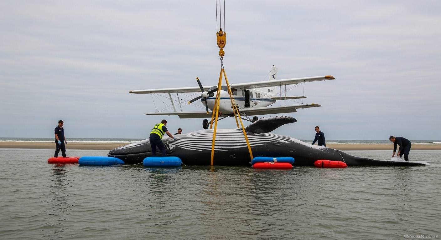 Next, a specially designed plane will be positioned under the whale. This plane, equipped with float bodies, will serve as a transport vehicle for the whale. Slowly and carefully, the whale will be lifted onto the plane, with the float bodies ensuring its smooth movement. The hope is that with this delicate operation, the whale will be brought back to deeper waters, far from the shallow sandbanks where it has been trapped.