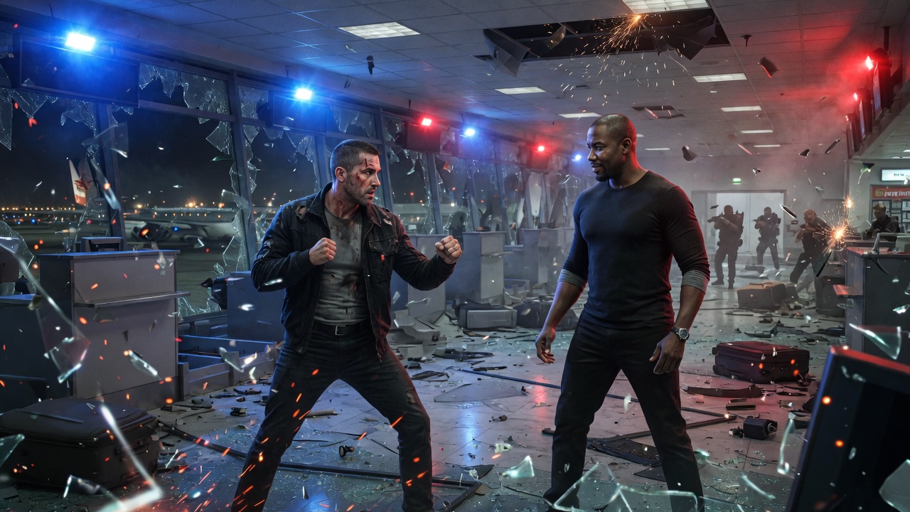 Diverted to a deserted Baltimore airport, chaos erupts as elite mercenaries led by the ruthless Robert Jackson (Michael Jai White) launch a brutal assault. Harris fights through waves of heavily armed operatives while protecting key witnesses. Supporting roles add depth: Tom Berenger as stern CIA boss Mike Marshall, Alexis Knapp as rogue Homeland agent Jennifer Lomax, Meena Rayann as Mansur’s pregnant wife Niesha, and Hannah Arterton as Hooper. Additional supporting cast includes Aaron Toney as Dunbar, Teddy Linard as Campbell, and Jill Winternitz as Kelly Harris.