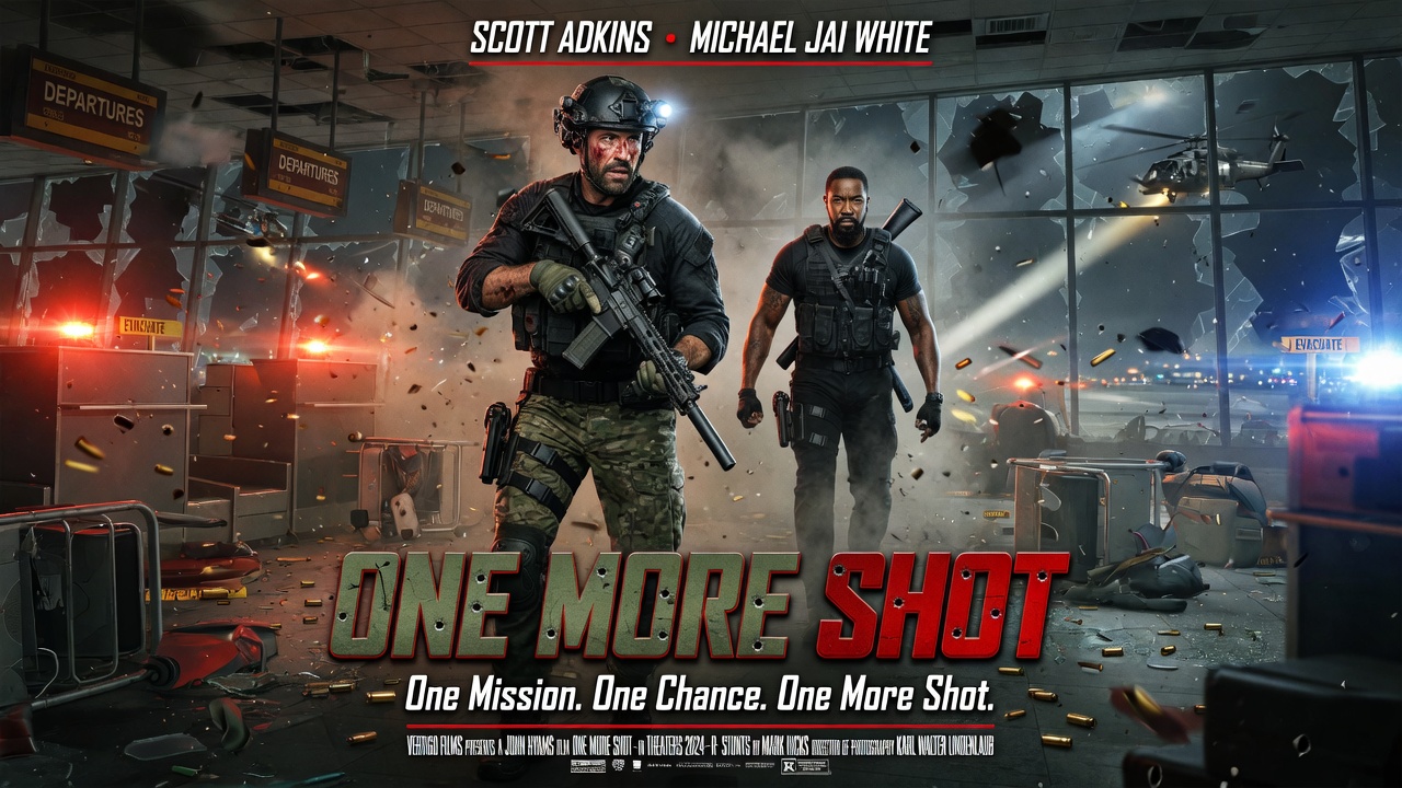 In the high-octane action thriller One More Shot (2024), Navy SEAL Jake Harris (Scott Adkins) faces his toughest battle yet. Fresh from a deadly black site attack in Poland, Harris must escort dangerous terrorist suspect Amin Mansur (Waleed Elgadi) to Washington D.C. for urgent interrogation about a ticking dirty bomb set to explode during the State of the Union address.