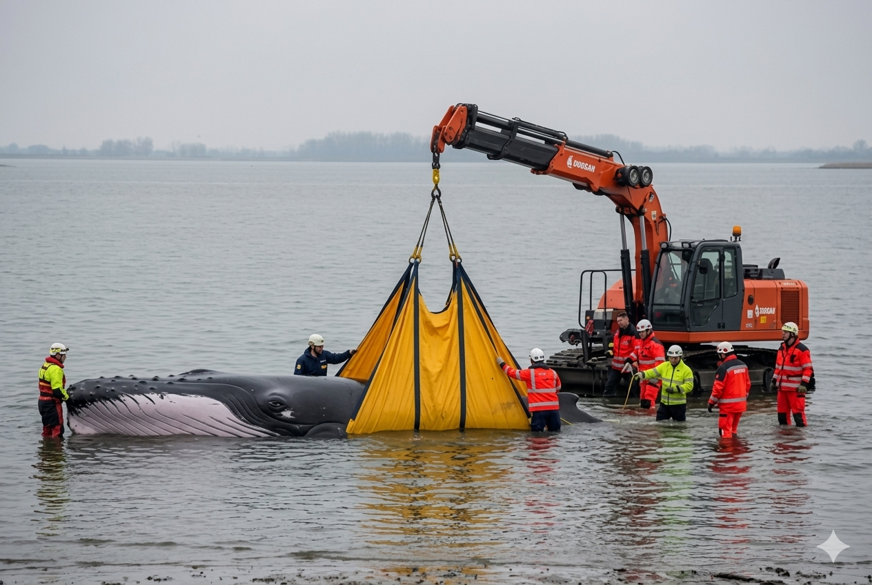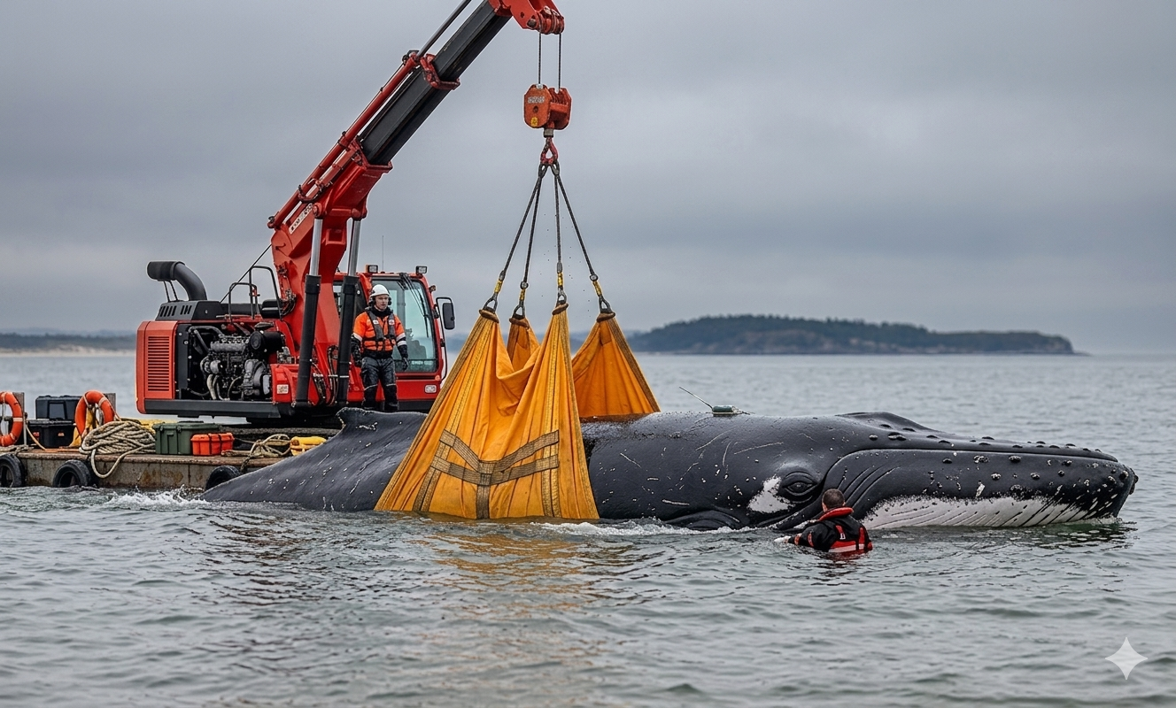 It all hinges on one thing: balance. A single wrong decision could disrupt everything, but the crew remains hopeful, watching as the lift progresses, with their eyes trained on the whale’s body, each movement carefully monitored.