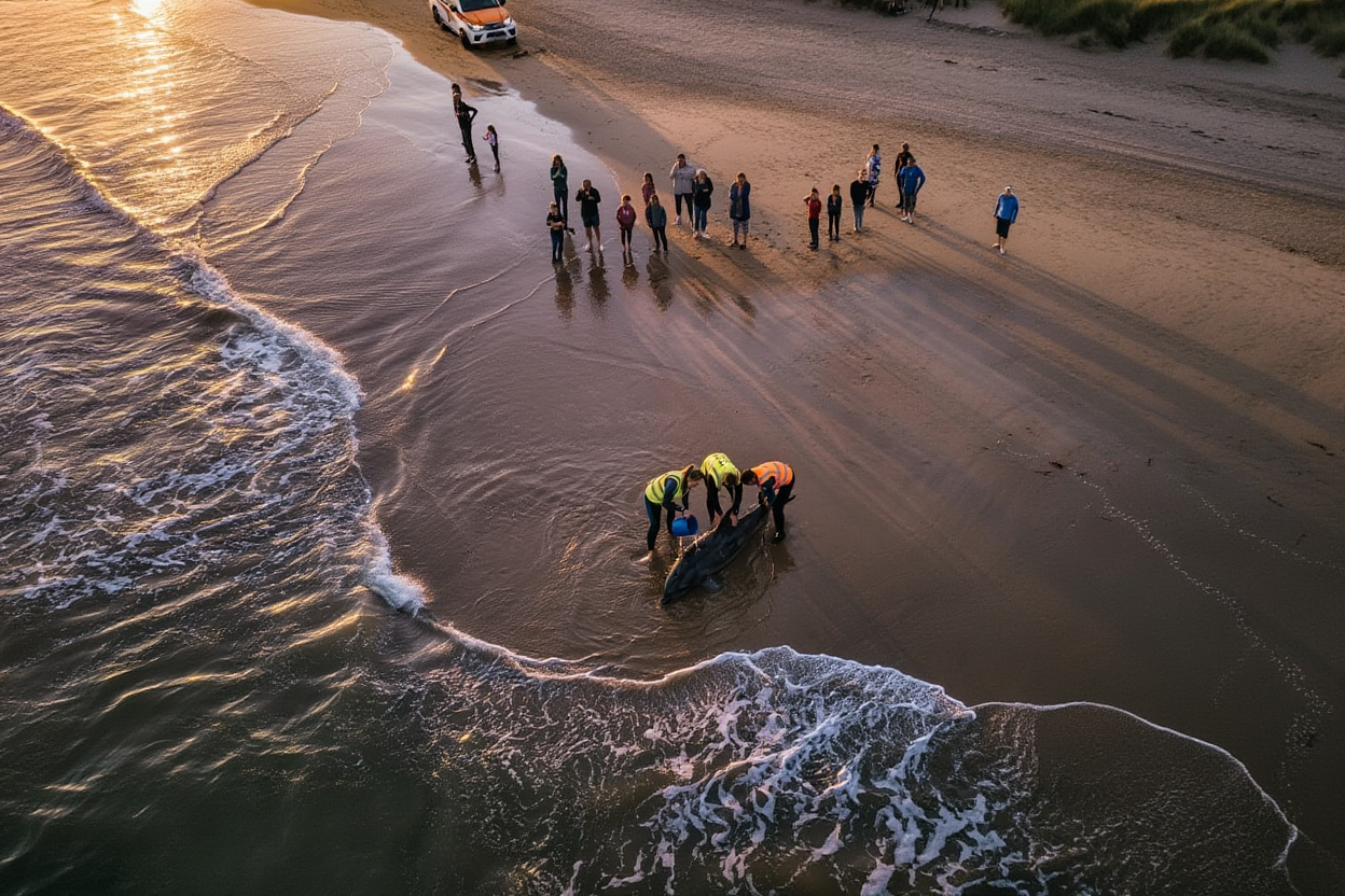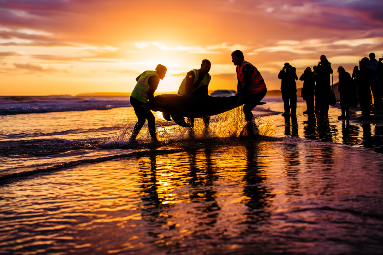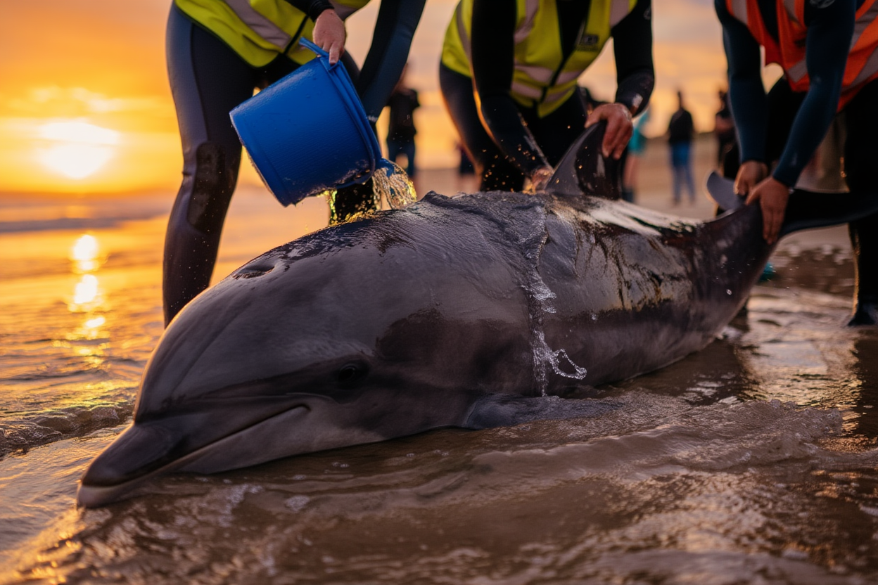 Race Against Time: Volunteers Fight to Save Stranded Dolphin at Sunset