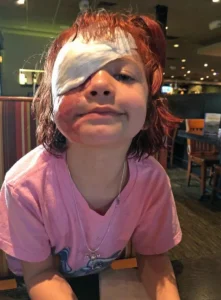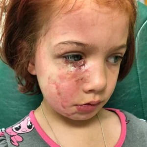 During a visit to a friend’s home, two pit bulls suddenly attacked without warning. The force was overwhelming. Zoey was knocked to the ground, dragged, and bitten repeatedly. Her screams filled the air as the dogs inflicted devastating injuries.