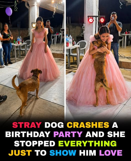 Guests smiled. Someone brought him food. Others gently petted him. The once-uninvited visitor slowly relaxed, his tail wagging as if he finally understood—he was safe. 🐾✨
