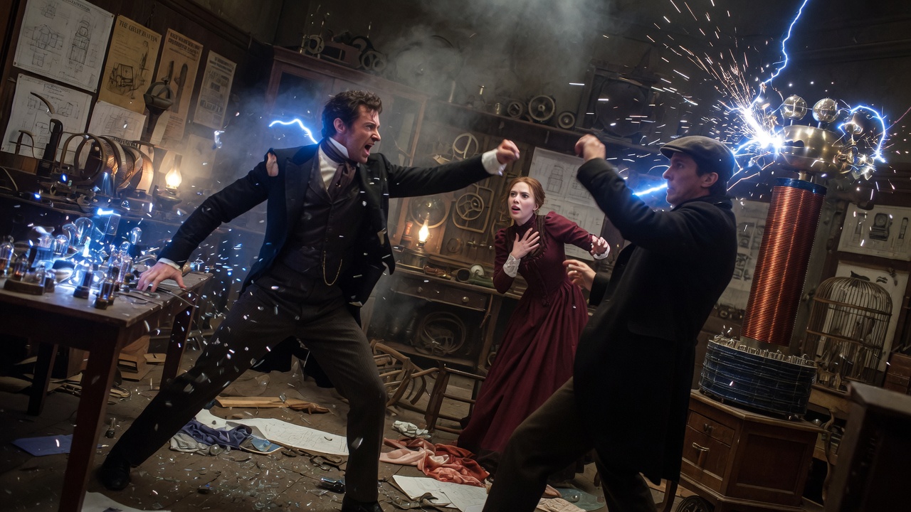 Starring Christian Bale as Alfred Borden and Hugh Jackman as Robert Angier, the film draws you into a battle of genius versus obsession. Alongside them, Scarlett Johansson shines as Olivia, while Michael Caine, Rebecca Hall, and David Bowie as Nikola Tesla add unforgettable depth.