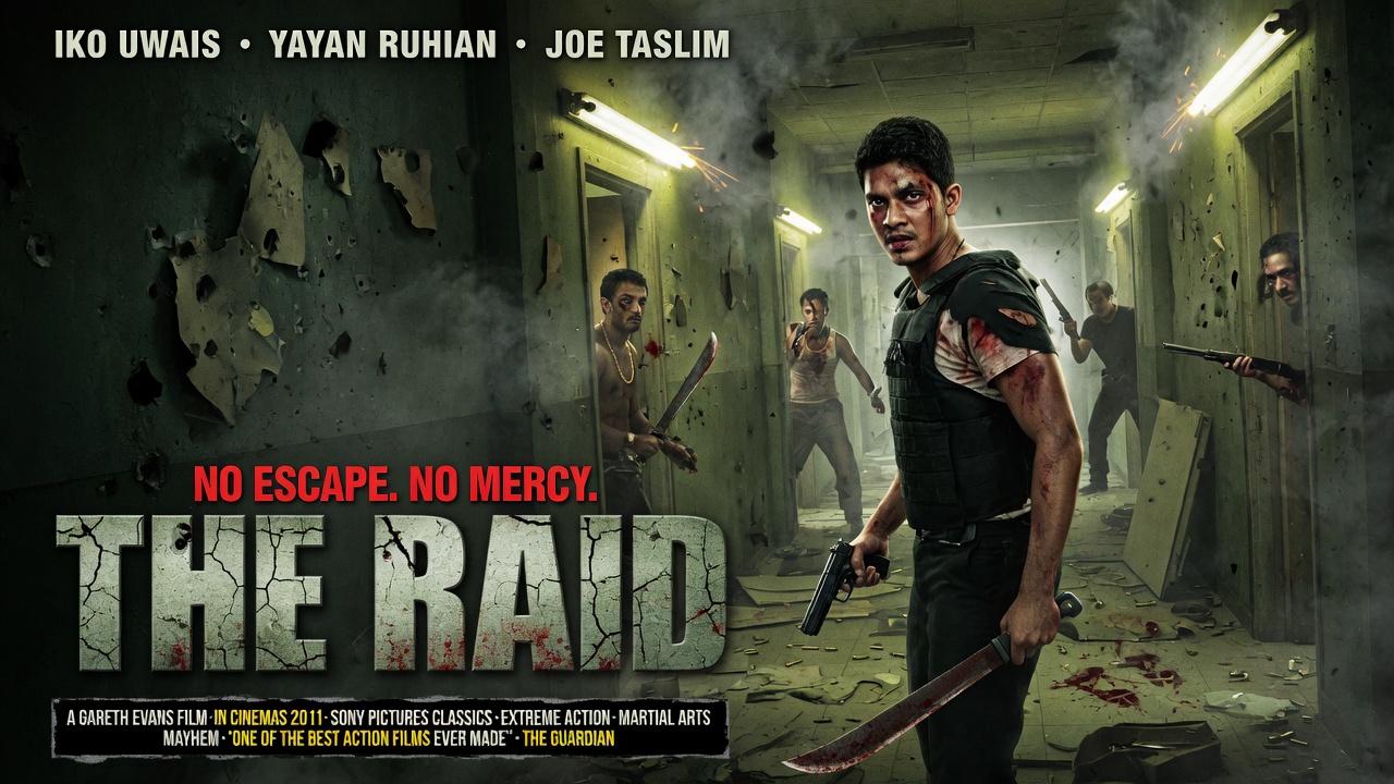 Explosive, brutal, and relentlessly intense — The Raid takes you deep into a nightmare high-rise ruled by chaos. Led by rookie officer Rama, portrayed by Iko Uwais, an elite SWAT team storms a building controlled by a ruthless crime lord. But when their cover is blown, survival becomes the only mission.