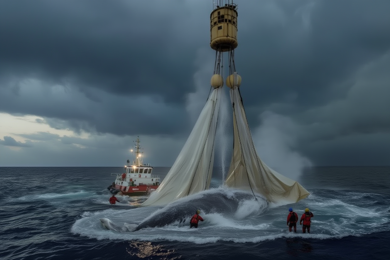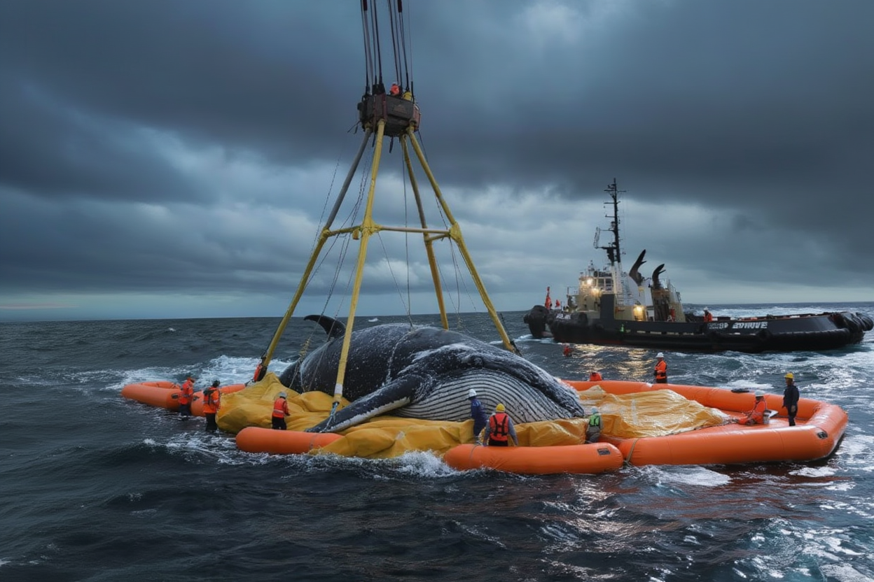 In this high-stakes operation, the team is using the air cushions once again, but this time with added precision. The whale will be lifted and then kept in a semi-upright position to minimize the risk of suffocation. Divers will be entering the water to assist in ensuring Timmy stays stable as the rescue team maneuvers the whale toward deeper waters.