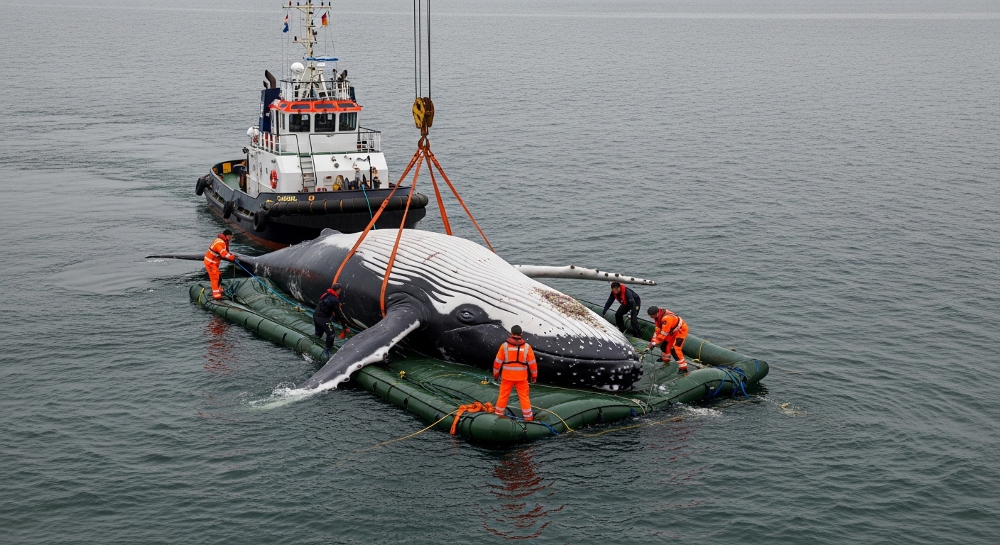 But now, thanks to a sophisticated and world-first plan, the team is trying something innovative and highly risky: They are using industrial-grade air cushions to gently lift the whale from the shallow water and onto a specialized tarp. This tarp will be securely attached to two pontoons, which will then be towed by a tugboat to deeper waters—ultimately leading Timmy back to the North Sea and eventually the Atlantic Ocean.