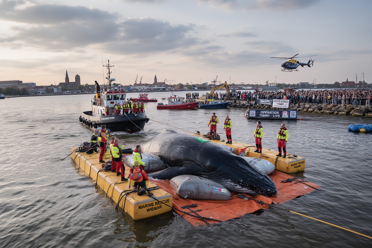 Timmy’s journey began on March 31 when he became trapped in the shallow waters near Wismar, Germany. For a creature of his size, usually navigating the vast expanses of the ocean, being stuck in confined waters posed a serious threat to his health and survival. His plight quickly gained international attention, and rescue efforts were mobilized immediately.