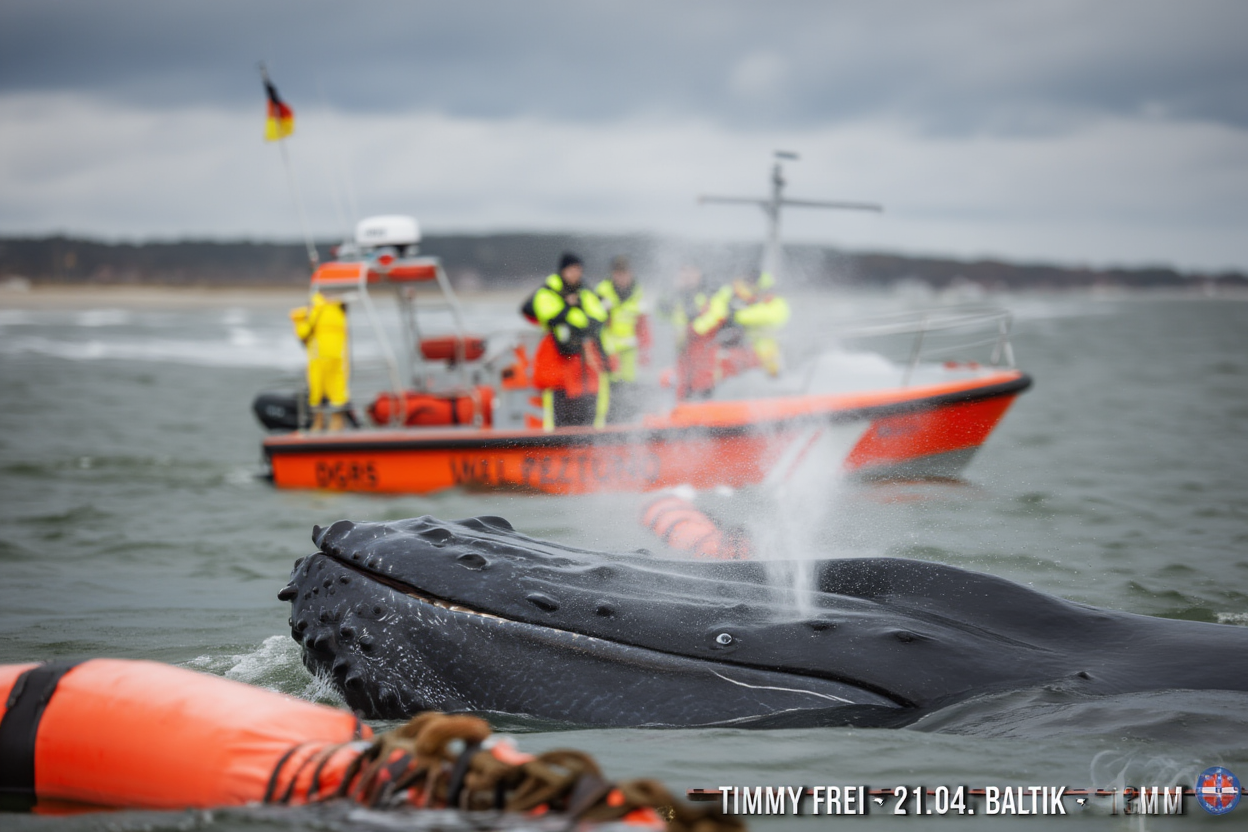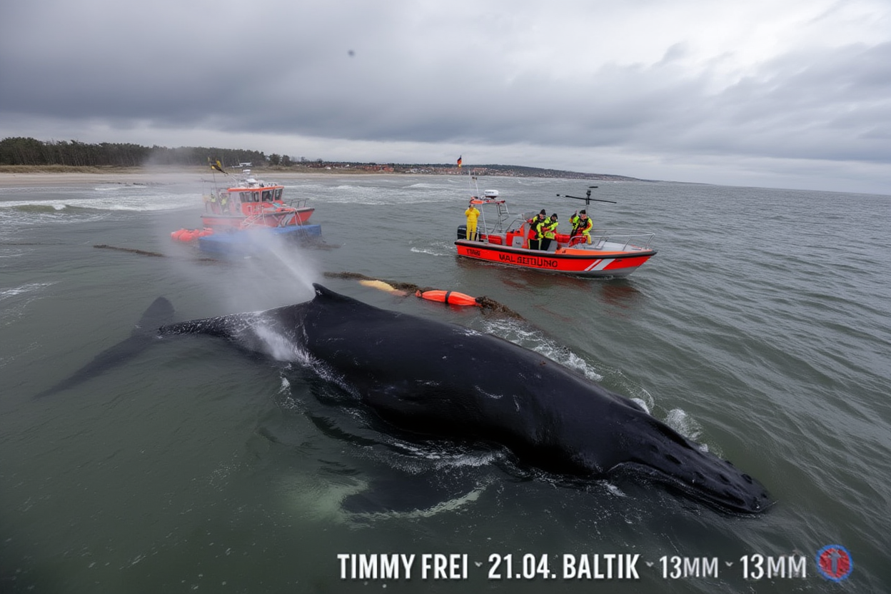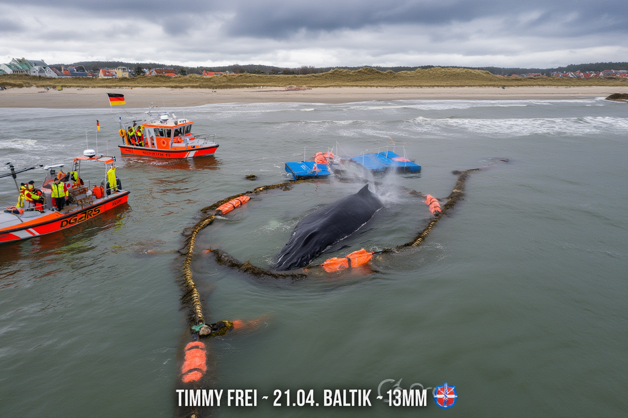 Timmy first became stranded on March 31 in shallow waters near the town of Wismar, Germany. For a majestic creature like him, who typically roams the vast oceans, being trapped in a confined area was both dangerous and disorienting. The giant whale, measuring over 13 meters in length, found himself stuck, unable to make his way back into deeper waters.