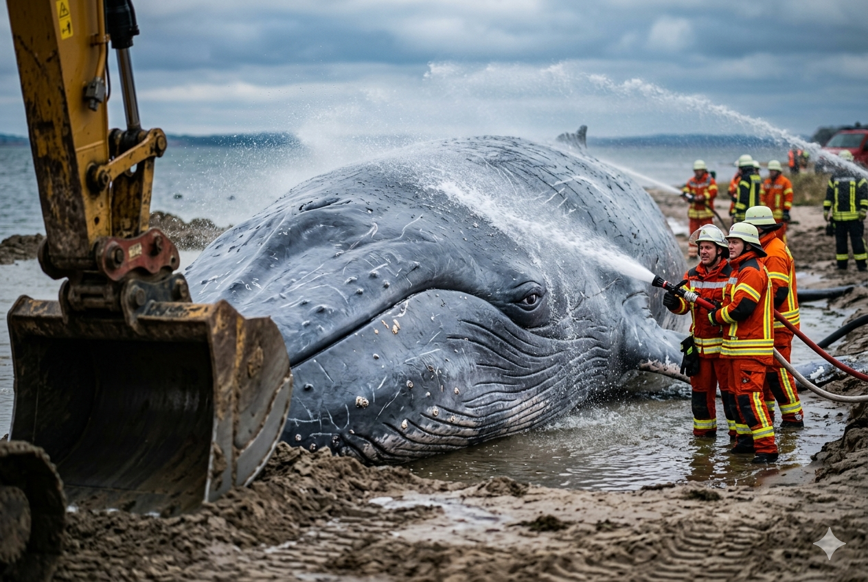 Hope still lingers, but the situation remains critical. The whale’s chances of survival depend on the success of this complex operation. If the whale can be moved to deeper water, it may regain enough strength to continue its journey back to the open sea. But time is running out.